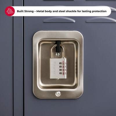 The Master Lock 643D Set Your Own Combination Padlock features a 1-9/16 in. (40 mm) wide metal body for durability. The 1/4 in. (6 mm) diameter shackle is 7/8 in. (22 mm) long and made of nickel plated steel, offering resistance to cutting and sawing. The 4 dial combination security offers keyless convenience. The Limited Lifetime Warranty provides peace of mind from a brand you know and can trust. Color: Silver