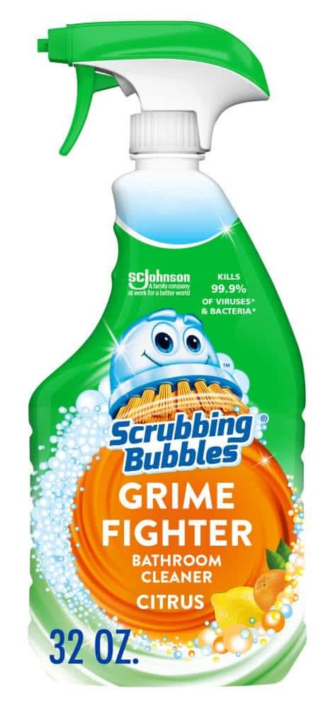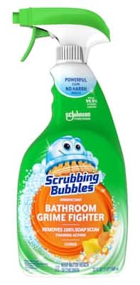 Scrubbing Bubbles Bathroom Grime Fighter Spray kills 99.9% of viruses^ and bacteria* and is the perfect product for tackling messes in bathrooms. Bathroom Grime Fighter removes 100% of soap scum from any surface. This disinfectant spray is best for cleaning large bathroom spaces-like the bathtub or shower-and in hard-to-reach places like between tile and around fixtures.This all-purpose cleaner is bad news for bathroom grime and good news for sparkle and shine. Grime Fighter is an effective tile cleaner, sink cleaner, bathtub and shower cleaner, as well as an overall bathroom cleaner. This disinfectant is also available in Floral Fusion, Lavender and Rainshower scents as well as in aerosol form.When used as directed, kills: ^Herpes Simplex Virus Type 1, Herpes Simplex Virus Type 2, Influenza A (H1N1) Virus, Respiratory Syncytial Virus, Rotavirus.*Staphylococcus aureus (Staph), Salmonella enterica (Salmonella), Pseudomonas aeruginosa, Escherichia coli 0157: H7 (E. coli), Listeria monocytogenes. S.c. johnson & son, inc., Racine,WI,53403-2236