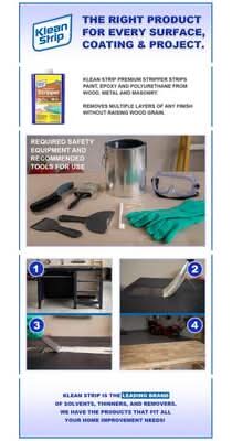 For Pro's and DIY'ers, Klean-Strip is the leading brand of solvents, thinners, removers, and cleaners that are dependable for reliable results. Klean-Strip Premium Stripper and Remover strips paint, epoxy and polyurethane from wood, metal and masonry. Removes multiple layers of any finish without raising wood grain. Read entire label prior to use or stor This product can expose you to Ethylbenzene, which is known to the State of California to cause cancer. For more information, go to www.P65Warnings.ca.gov