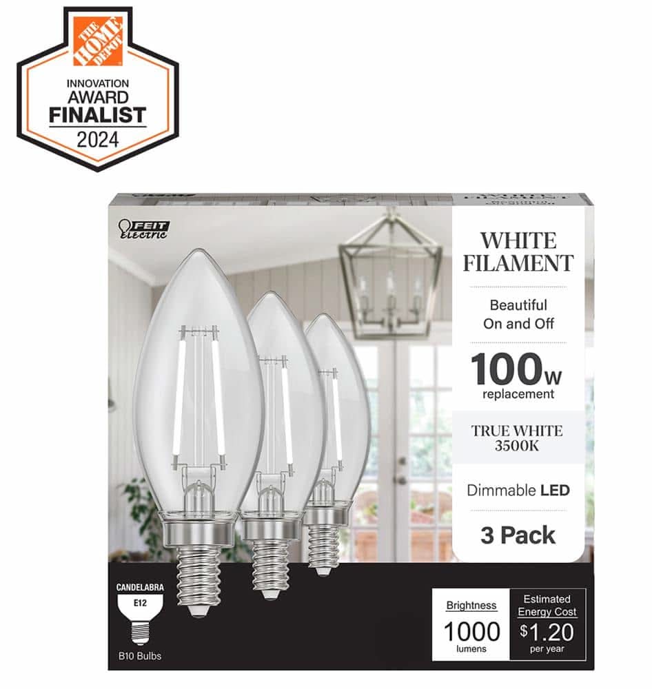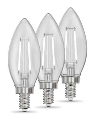 Feit Electric 100-Watt Equivalent B10 E12 Candelabra Dim White Filament Clear Glass Chandelier Led Light Bulb True White 3500K, 3-Pack