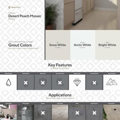 Desert Peach 10-7/8 in. x 12 in. Mosaic brings a touch of luxury and style to any space. Made from peachy beige marble, this mosaic showcases a mini brick pattern that adds both timeless charm and modern flair. Its polished finish highlights the marble's natural beauty, creating a radiant, sophisticated look. Idea This product contains a chemical known to the State of California to cause cancer, and birth defects or other reproductive harm. Please visit https://www.p65warnings.ca.gov/ for more information.