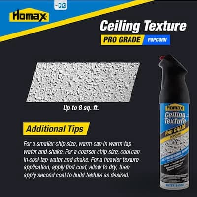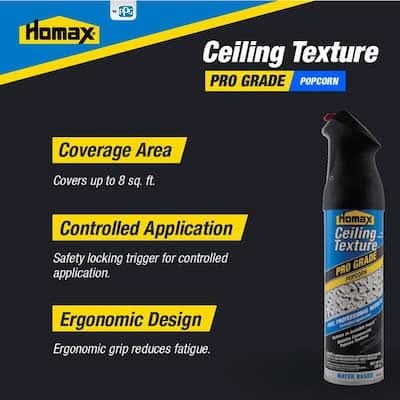 Homax Pro Grade Popcorn Ceiling Texture delivers an invisible repair by replicating polystyrene, perlite or other aggregate type ceiling textures. Ideal for patching, this professional texture tool makes popcorn repairs fast and easy, providing a portable and convenient alternative to a hopper gun. The controlled application and vertical actuator provides a controlled build and an improved blend. Cancer - www.P65Warnings.ca.gov.