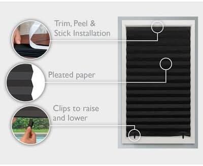 Redi Shade No Tools Original Blackout Pleated Paper Shade Black, 36 In. W X 72 In. L