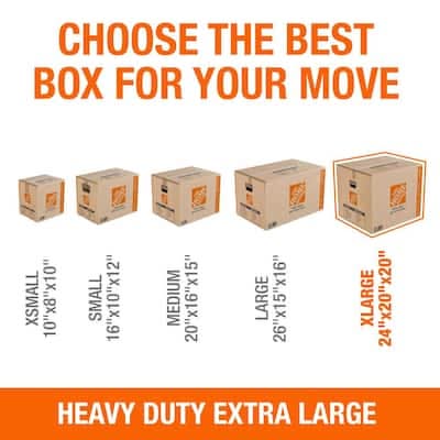 The Home Depot Heavy-Duty Extra-Large Moving Box is great for long-term storage and for moving heavy, valuable, or fragile items. The double wall heavy-duty construction is perfect for storing items in non-climate controlled areas such as attics, basements, garages, and mini-storage warehouses. Ideal for kitchen items, small appliances, frames, and more. This box is crafted from 100% recycled material for an environmentally responsible moving and storage option. Size: XL