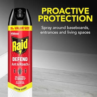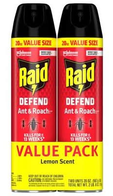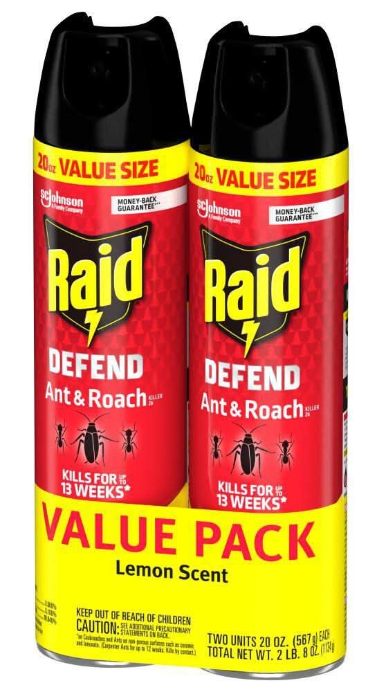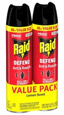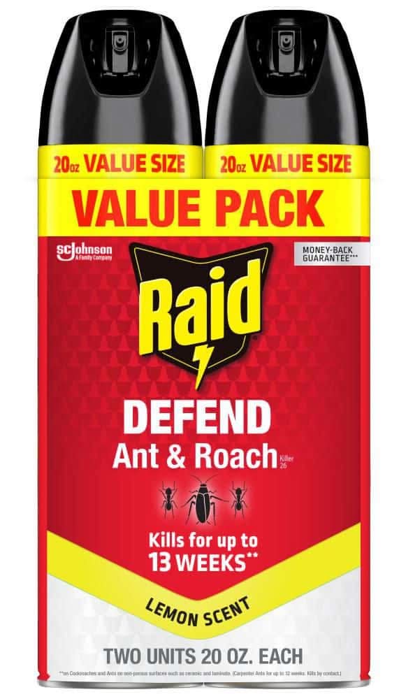 Raid Defend Ant And Roach Insect Killer, Indoor Insecticide, Residual Killing Power, Lemon Scent, 20 Oz. (2-Pack)