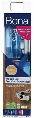 The Bona Spray Mop for Hardwood Floors is an all-in-one solution to clean and reveal the natural shine of your floors. Equipped with an extra-large mop head and sturdy handle to make cleaning quick and easy, and the flexible rubber corners protect baseboards and furniture from dings and scratches. A secondary grip allows for added cleaning power, and a retractable hook makes storage easy. Includes Bona's uniquely formulated Hardwood Floor Cleaner to care and protect your floor with it's gentle, pH-neutral formula. This product contains 95% USDA certified biobased content, and is Safer Choice Certified. The Bona Spray Mop includes a refillable mop cartridge and a washable and reusable microfiber cleaning pad.