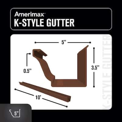 The America Home Products 10 ft. Aluminum Gutter features a baked-on, brown finish and durable aluminum construction. This gutter is ideal for gutter repairs and replacements and as an add-on to existing 5 in. gutter systems. Use the gutter to control runoff and help prevent foundation erosion.