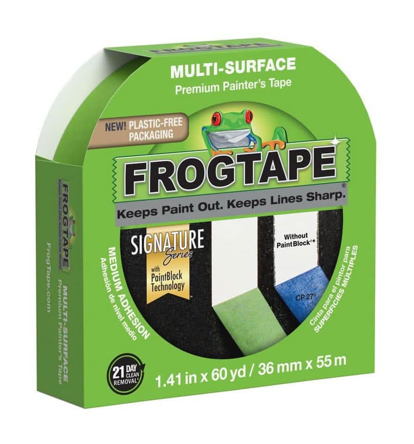 Get super sharp paint lines on your next project with FrogTape Multi-Surface Painter's Tape. This premium painter's tape is treated with exclusive PaintBlock Technology to seal tape edges and prevent paint bleed. Featuring medium adhesion, this multi-surface painter's tape is ideal for a variety of surfaces and applications. Plus, the solvent-free, high performance adhesive bonds quickly to the surface, so there is no wait to paint.
