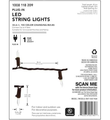 Hampton Bay 100-Light 35 Ft. Outdoor/Indoor Color Changing Mini Led Garden String Light