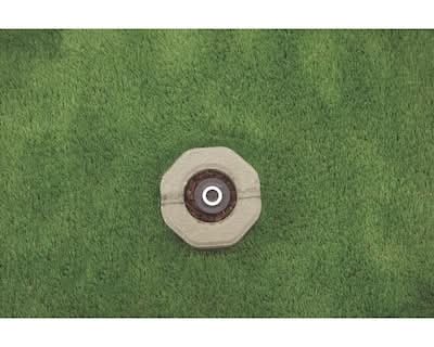 The durable concrete construction of the Oldcastle Sprinkler Guard protects sprinklers from lawnmowers. Protective donuts encase sprinkler heads and allow easier operation. Size and weight are approximate.