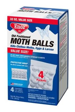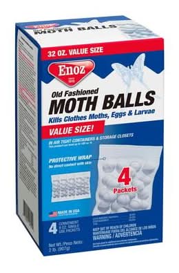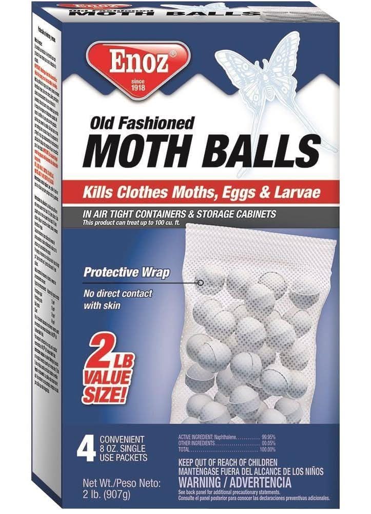 Enoz Mothballs are ideal for use in protecting clothing and other materials. All Enoz products are EPA approved. Enoz products provide the only sure method of killing destructive clothes moths, eggs and moth larvae preventing damage to clothing and other stored items.