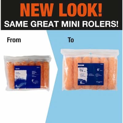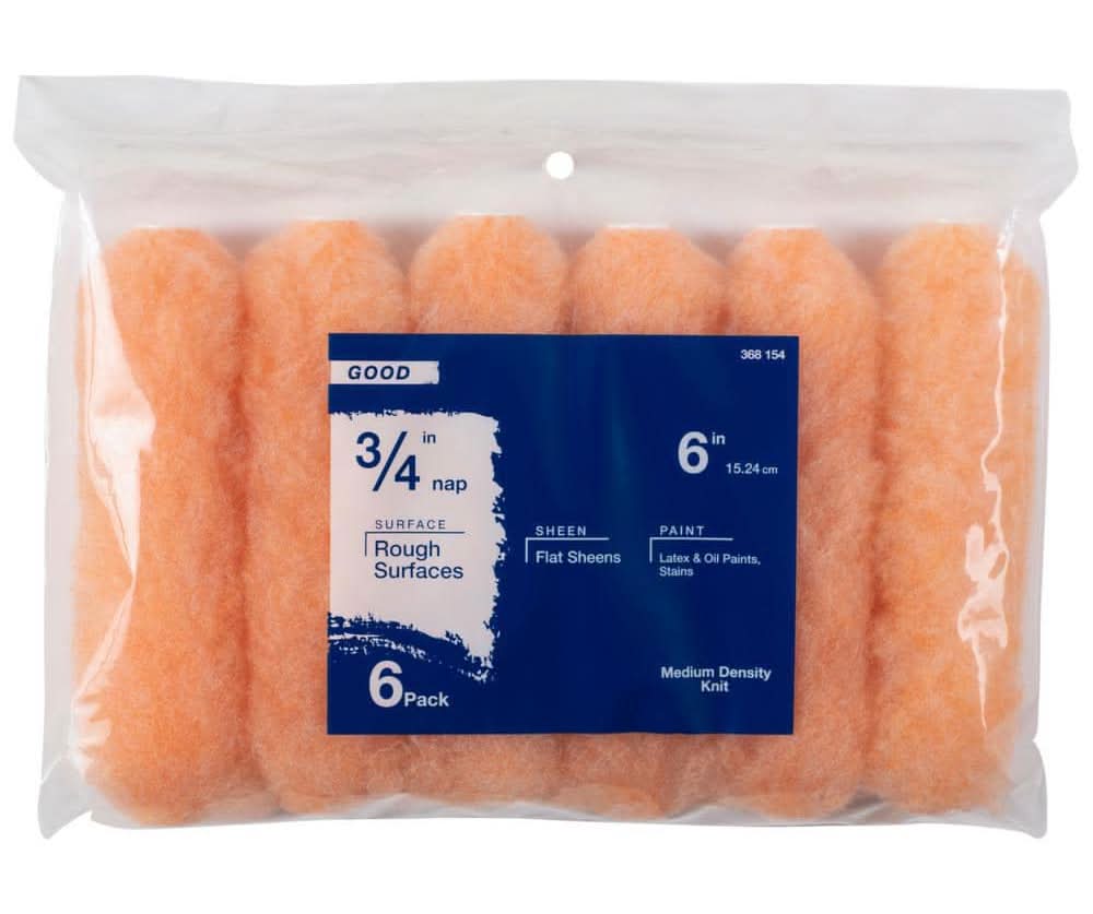 These polyester rollers are perfect for smaller projects. Ideal for working in tight confined spaces and for trim work. Recommended for rough or semi-rough surfaces. This 6-pack of 6 in. roller covers are a great value. Size: 6x3/4 In