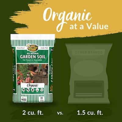 Revitalize your in-ground garden with this nutrient-rich, all-natural soil blend. Kellogg Garden All Natural Organics All Natural Garden Soil for Flowers and Vegetables enriches and fortifies your native soil. Specially crafted to enhance native soil, this premium mix combines aged wood fines and organic materials to create the perfect foundation for growing vibrant flowers and vegetables. Designed to reduce soil compaction and improve moisture retention, all while supporting healthy plant growth.When planting, mix the organic garden soil 50:50 with the native soil in your garden beds. Plant your flowers or vegetables, water thoroughly, and watch them thrive!Pro Gardening Tip: Boost growth by mixing in organic granular plant food when planting, then reapply every 5-6 weeks.