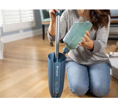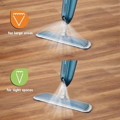 Lifeproof microfiber spray mop cleans any waterproof hard surface flooring and has 2 spray modes to clean wide areas and narrow spaces. Wide spray works well for general use and narrow spray is great to clean heavy dirt build-up. Extra large 34 oz. refillable spray bottle allows for heavy duty home use. The Lifeproof microfiber mop includes one-touch bottle release for easy release and safety locking. A soft border ring on the mop protects paint on furniture and moldings and the ergonomic handle is easy to control and reduces fatigue from all-day use. The Lifeproof spray mop comes with a 1-year warranty.