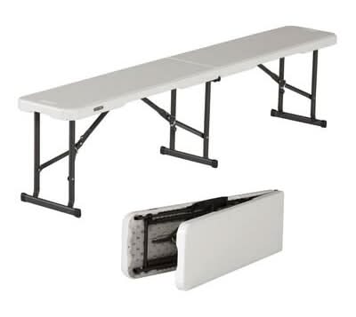 Enjoy flexible and easy seating at a sports match, campout, picnic, the, pool, or anywhere you need multiple seats in a single, easy-to-use bench. You can rely on the long-lasting durability of a powder-coated steel frame and high-density polyethylene seat. The UV-protected bench will no WARNING: This product can expose you to chemicals including nickel which are known to the State of California to cause cancer and birth defects or other reproductive harm. For more information go to www.p65warnings.ca.gov. • Color: White-black • Size: 6 ft
