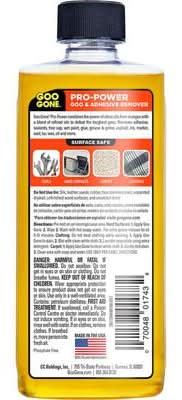 The Goo Gone's line of products is a trusted brand, we stand by our products for all of your dirty, sticky, messes. Safe for you, your surfaces and your home. Please explore our line of Goo Gone Original, Pro-Power, All Purpose, Sticker Lifter, Spray Gel, Patio, Grill, Oven, Automotive, Tile and Grout, Clean Up Wipes, Kitchen Degreasers, Paint and more. There are so many ways to remove tough messes with Goo Gone Products. Specifically formulated with Citrus Power, Goo Gone's portfolio of products effortlessly cleans up stains and sticky messes around your entire home. From gum to grease, fabric to fiberglass, you can count on Goo Gone to safely remove almost any problem and restore your surfaces to their original condition. It's the formula you love on a whole new level. Goo Gone Pro-Power dissolves even the toughest stains and sticky messes. Goo Gone Pro Power is safe on finished wood, painted surfaces, glass, fabric, metals, plastics, ceramic/ porcelain, brass, chrome, fiberglass, grout, and perfect for cleaning tools. The pro power formula works on all type of messes such as silicone caulk, adhesives, sealants, tree sap, wet paint, glue, asphalt, ink, marker, soot, wax, grease and oil. Keep a bottle or two handy for anything life may throw at you or your walls, floors, cars, etc. You get it, Goo Gone is surface safe so it is a safe alternative to abrasive cleaners that may damage your surfaces. Sit back and let Goo Gone take care of your toughest messes.