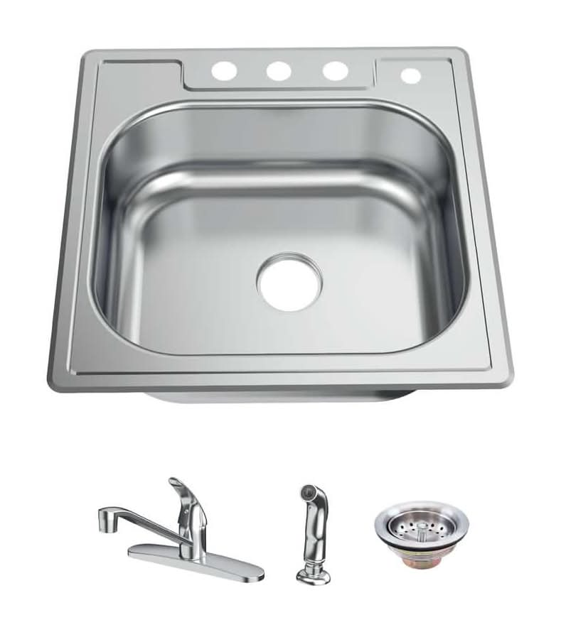 Glacier Bay 25 In. Drop-In Single Bowl 20 Gauge Stainless Steel Kitchen Sink With Faucet And Sprayer