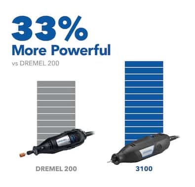 The Dremel 3100 offers robust performance and mass versatility, offering all-around utility to tackle a wide range of applications. As the newest mid-range corded rotary tool, the 3100 empowers budding DIYers to tackle both home repairs as well as arts & crafts projects. The powerful 1.2 AMP Variable Speed Motor features 5 precise speed settings between 5,000-35,000 for full control of your projects. The compact and ergonomic design makes it easy to hold, while the flexible 6-foot cord allows for continued endurance for continuous work sessions. Designed with the planet in mind, the 3100 features a sustainably engineered tool housing made of recycled plastic and is packaged in a fully recyclable carton.