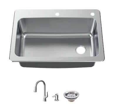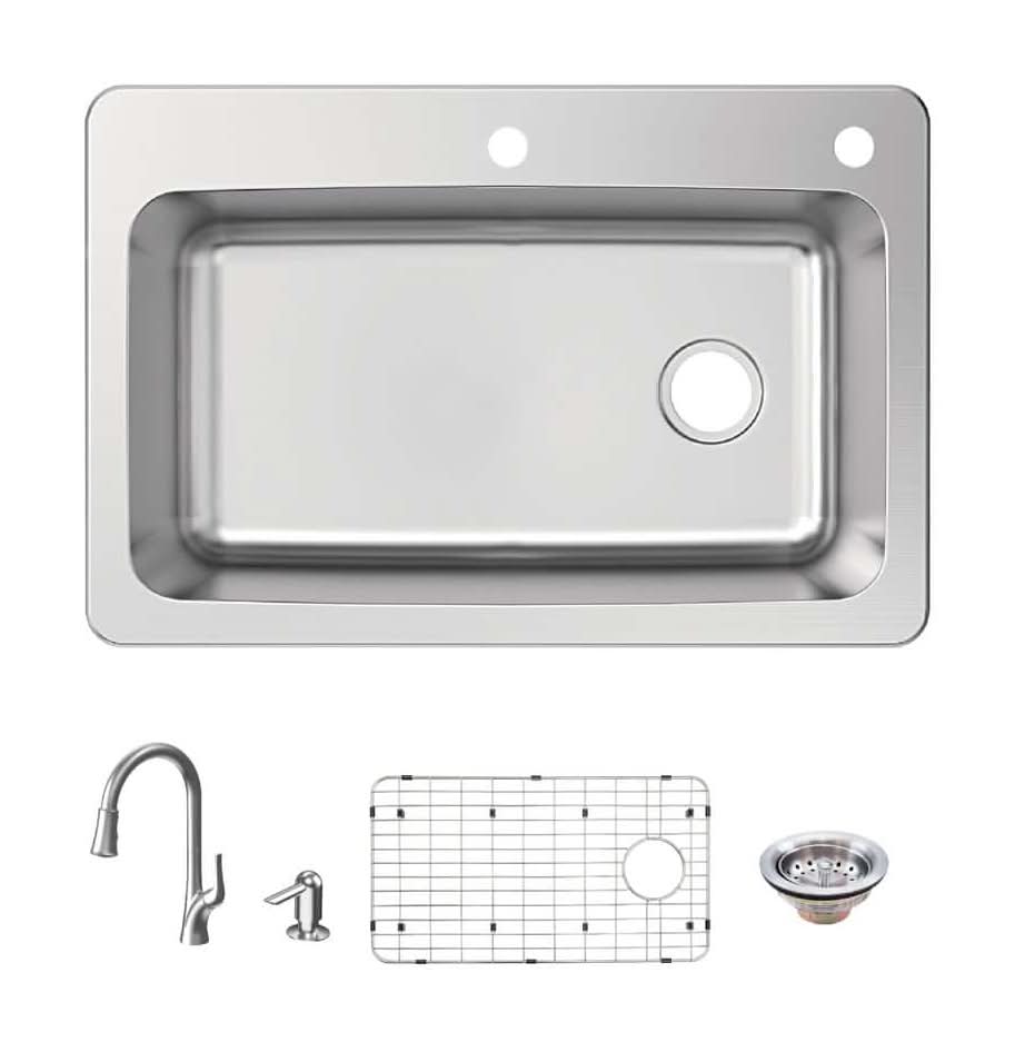 Glacier Bay 33 In. Drop-In Single Bowl 18 Gauge Stainless Steel Kitchen Sink With Pull-Down Faucet