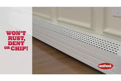 NeatHeat baseboard front cover is made of polymer and the end caps are ABS plastic. You can save yourself up to USD 75 per hour in labor plus the cost of material by installing NeatHeat instead of having a plumber install new baseboard throughout your home. You can install NeatHeat throughout the entire property in less time and without specials tools as it snaps on over the existing baseboard heater. NeatHeat will never rust or need replacing. It doesn't have any sharp edges and helps protect against children's and grandchildren's fingers touching the sharp fins inside. Check the How To Measure For NeatHeat guide below to make sure your individual baseboard heaters are the correct size for NeatHeat. Common brands include Slant Fin series 15, 30 and 2000, Sterling series petite 7, Suntech, and Weil Mclain, however there are also many lesser know brand names so it is always best to check your specific measurements.