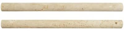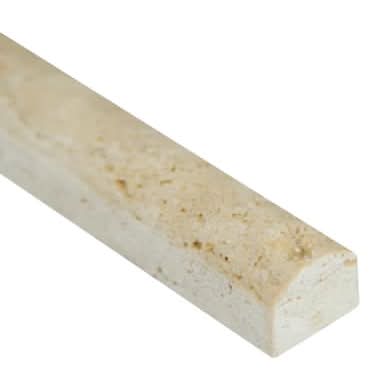 This natural stone travertine design evokes a rustic, old-world charm that's perfect for today's casual lifestyle. With a large selection of sizes and accessories to choose from, it can easily be laid in a pattern or single layout. The Chiaro Travertine Pencil Molding Wall Tile is suitable for residential and commercial installations, including kitchens and bathrooms. Note: Please inspect all tiles before installation. Natural stone products inherently lack uniformity and are subject to variation in color, shade, finish, etc. It is recommended to blend tiles from different boxes when installing. Natural stones may be characterized by dry seams and pits that are often filled. The filling can work its way out and it may be necessary to refill these voids as part of a normal maintenance procedure. All natural stone products should be sealed with a penetrating sealer. After installation, vendor disclaims any liabilities. • Color: Chiaro beige • Size: 3/4x12 in