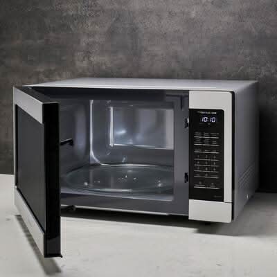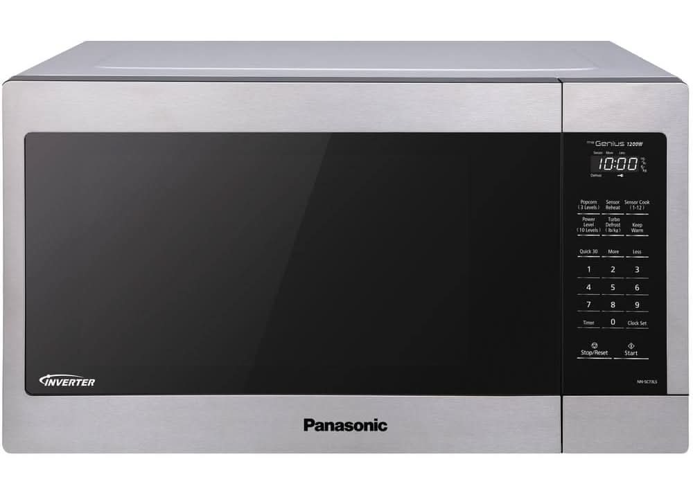The Panasonic NN-SC73LS microwave with Inverter Technology uses 1200-Watt of cooking power to cook, defrost, reheat and more. Unique Inverter Technology which, unlike traditional microwaves that rely on pulse-on, pulse-off power at lower temperatures, delivers a constant stream of cooking power at every temperature for more evenly cooked meals - edges to centers - every time. With the touch of the Genius Sensor cooking button, this microwave takes guesswork out of creating a great meal by automatically setting power levels and adjusting cooking or defrosting time for added time-saving convenience. The sensor measures the amount of steam produced during cooking and signals the microprocessor to calculate the remaining cooking time at the appropriate power level. A selection of 10-auto cook options enable you to quickly prepare your favorite foods, such as pizza, pasta, soup, casserole and other dishes, plus enjoy a dedicated popcorn button, keep warm function and more. Spacious 1.6 cu. ft. interior includes 13.6 in. glass turntable and fits a large baking dish. The stainless steel exterior design can rest on any open surface in the kitchen and can be easily moved. Size: 1.6 Cu. Ft