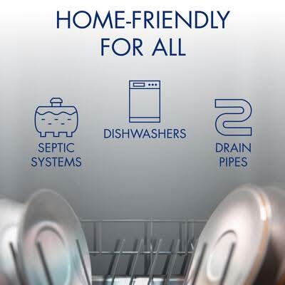 Trapped, old residue from food and oil in the dishwasher can cause foul odors in the kitchen. This heavy-duty dishwashing cleaner is a convenient, economical, and easy way to freshen the kitchen and help maintain optimal dishwasher performance. The unique formula also removes mineral buildup from the entire machine, which, over time, affects your machine's performance. It eliminates even the hidden, vital, and hard-to-reach areas. It is specially formulated to penetrate buildup and hard water impurities so they can easily be removed from your dishwasher's water jets, tubes, and pipes. The cleaner works in any dishwasher, including stainless steel interiors. It's also plumbing, pipe, and septic-friendly. Our dishwasher cleaner removes the bad smells trapped in the dishwasher to create a fresher home; a cleaner dishwasher means cleaner dishes. Use the deep cleaner, disinfectant, and odor remover monthly, or as needed, to remove smelly plate leftovers, freshen your appliance, and improve efficiency. How to use: Empty the dishwasher and do not use it with detergent. Follow detailed instructions on the packaging. For heavy buildup, a second application may be required.