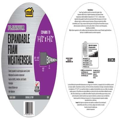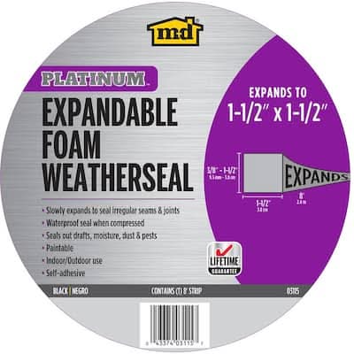 The M-D Platinum Expandable Foam Weatherseal is designed to safeguard against drafts, moisture, dustand insects while accommodating uneven and oddly-shaped gaps flawlessly. Its expandable foam gradually fills gaps, ensuring a perfect fit as it expands to meet your specific requirements. Efficiently seal your home and prevent heat or air conditioning loss, contributing to substantial energy savings. Ac Cancer and Reproductive Harm - www.P65Warnings.ca.govCáncer y Daño Reproductivo - www.P65Warnings.ca.gov • Color: Black • Size: 1.5in x 8ft