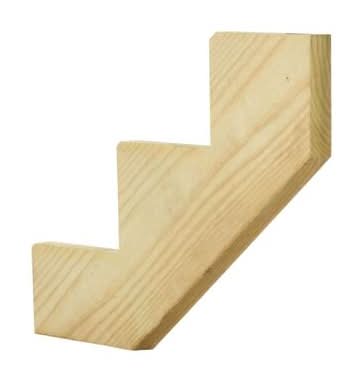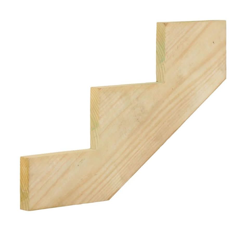 Build sturdy outdoor stairs with this 3-step stair stringer, cut from a 2 x 12 board and notched to a 6¾ in. rise and 10 in. run. It's pressure-treated with MCA for ground contact, making it ideal f Drilling, sawing, sanding, or machining wood products can expose you to wood dust, a substance known to the State of California to cause cancer. Avoid inhaling wood dust or use a dust mask or other safeguards for personal protection. For more information, visit https://www.p65warnings.ca.gov/products/wood-dust Color: Pressure treated