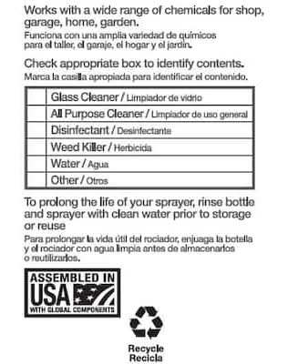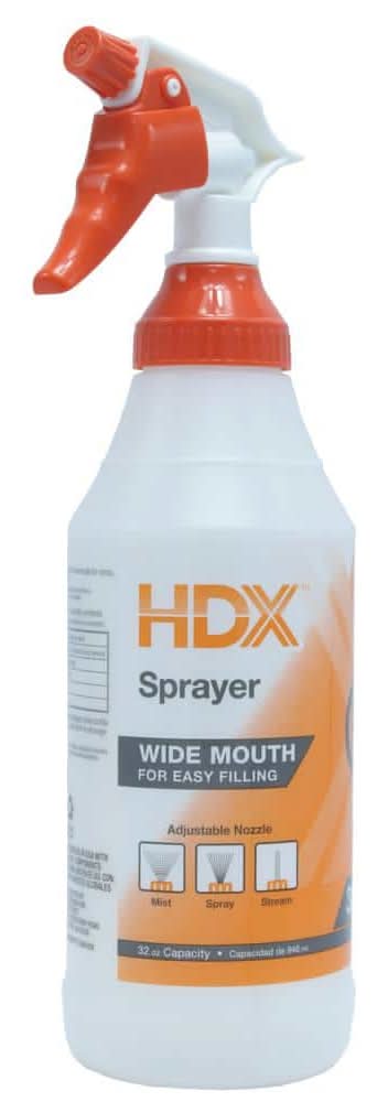 The HDX 32 oz. Spray Bottle is a fully adjustable spray bottle with nozzle that provides a jet stream to fine misting spray pattern and allows you to spray at any angle. The bottle has a large 1.5 in. opening which makes it easy to fill. Bottle includes measuring, dilution scale and check off grid to identify contents. Ideal for cleaning, lawn and garden, pest control, contractor uses, mixing chemicals, weed control, insecticides, pet training and more. Please read and follow chemical manufacturers instructions for mixing and dilution. For best results with harsh chemicals evacuate sprayer and rinse with water after usage.