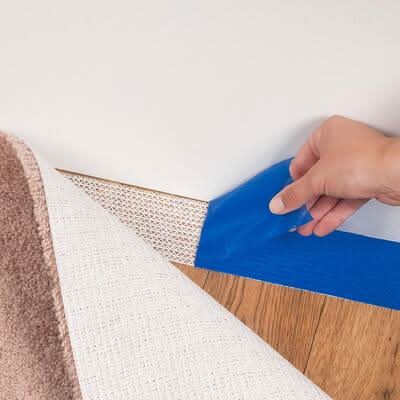 ROBERTS Indoor 60 ft. Rug Gripper Tape for small rugs and mats offers non-slip strength, to eliminate bunching or sliding across the floor. This tape can be used on tile, marble, laminate, wood and carpet. For best results, position the tape down on the surface, peel, cut to size, place rug or mat over, and apply pressure to set in place. It releases quickly, allowing you to easily reposition your rugs. It is safe, non-toxic, and odor free. Enjoy this easy and time saving installation alternative to adhesive or tack strip. • Color: Blue • Size: 60 ft