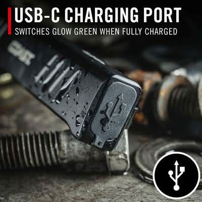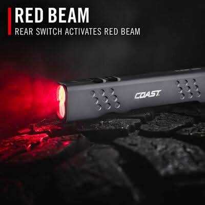 Shine bright, shine low. The rechargeable and waterproof slayer max with Red starts with an easy-carrying all-aluminum frame that glides in and out of pockets, secured when stowed by a removable metal clip. Lighting versatility then comes from the Dual Optic system. Use the forward power button to cycle the spot beam through 4-modes (high, low, Turbo, and Moonglow) and the rear button to switch the red beam on and off. Moonglow, Coast's low energy eco beam, is ideal for blackout conditions and when extended runtimes are critical. This economy mode draws so little power when engaged that the flashlight can run continuously for 50 hours. At the other end of the output range, Turbo mode shines 1000 lumens at 106 meters 347 ft. The red beam is perfect for low lighting in close proximity-whether to read glare-free in a tent or to navigate inconspicuously in the dark. 2-magnets at the front and back of the handle provide a hands-free lighting mount. During use, the charge level indicator ensures you always know when you need to plug back in-the integrated ZITHION rechargeable battery powers back up fast via the USB-C port, in just 2 hours. Constructed of top-grade materials and fit for the toughest work, the SLAYER PRO with Red is rated IP57 dust resistant and waterproof and backed by the Coast lifetime warranty.