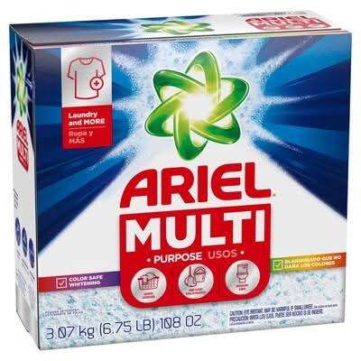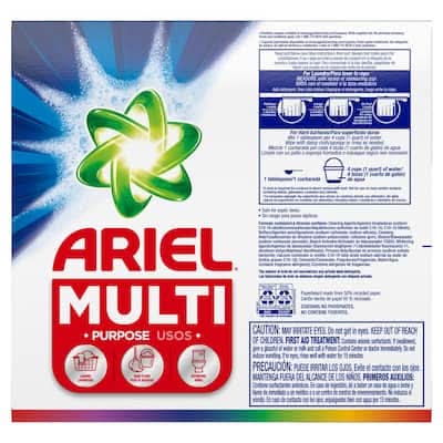 A versatile and cost-effective cleaning solution: Ariel Multi Purpose Powder Detergent offers a great clean at a great price. Designed nto only to provide effective cleaning, it also delivers color-safe whitening, making it perfect for all your laundry needs. But its benefits don't stop there.Ariel Multi Purpose Powder is not limited to laundry; it excels in various areas of your home. From hardwood floors to bathrooms, it tackles dirt and grime with ease. Its powerful formula cuts through grease and grime, leaving surfaces sparkling clean and fresh.With its fast dissolution, Ariel Multi Purpose Powder ensures quick and efficient cleaning. No more waiting around for the cleaning solution to activate. Simply dissolve it in water, and you're ready to go. This time-saving feature allows you to complete your cleaning tasks efficiently, leaving you with more time for the things you love.Experience the convenience and effectiveness of Ariel Multi Purpose cleaner. Achieve a great clean at a great price while enjoying color-safe whitening for your laundry. Watch as it effortlessly cuts through grime and grease on your hardwood floors and in your bathrooms. And with its fast dissolution, cleaning becomes a breeze.Trust Ariel Multi Purpose Powder Detergent to provide the exceptional cleaning power you need for a spotless home. Say goodbye to stubborn stains and hello to a fresh and clean living space.