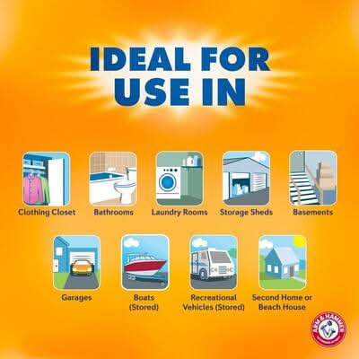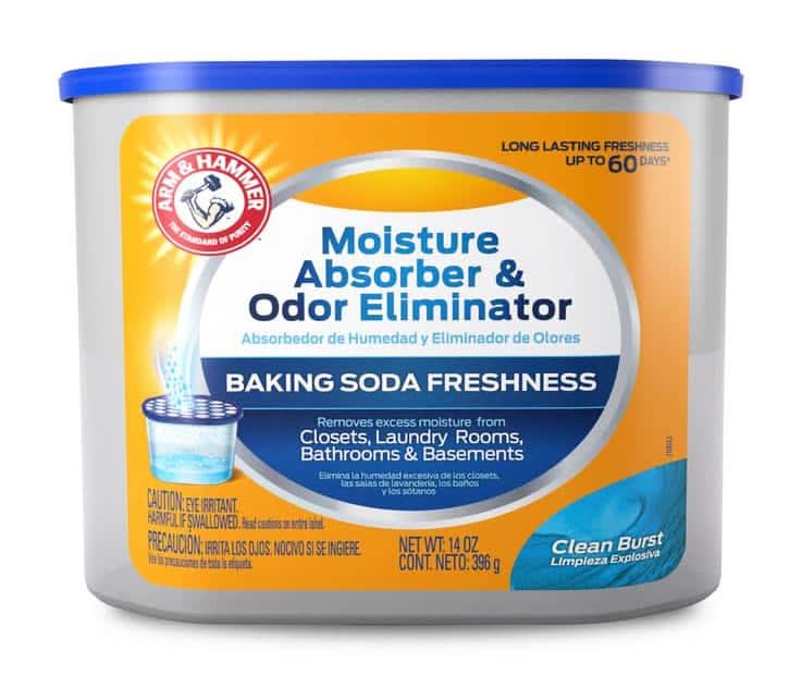 The Arm and Hammer 6 Pack Moisture Absorber and Odor Eliminator Clean Burst Tubs are your solution for continuous cleaner, fresher air. This deodorizer works by attracting and trapping excess moisture to maintain an optimal humidity level. It works as an odor absorber, shoe deodorizer, or room freshener where moisture is an issue. Use this multipack one at a time for long-lasting freshness or spread them out between the bathroom, laundry room, kitchen or home office. To use these convenient moisture absorber packets, simply pour a packet in the moisture absorber canister and close the lid. Discard once the moisture absorbing crystals have fully dissolved. Available in Fragrance Free and Clean Burst scent. Keep out of reach of children. Read and follow all label directions.