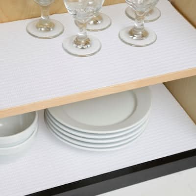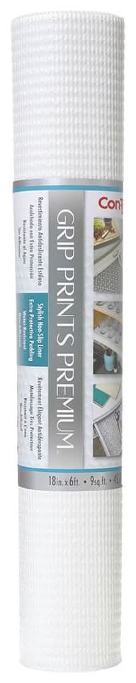 Con-Tact Grip Prints Premium White is a decorative, non-slip shelf and drawer liner. It has extra padded thickness for premium protection. It is ideal for shelves, drawers or any other flat surface. Wipes clean with a damp cloth. • Color: White • Size: 18 in x 6 ft