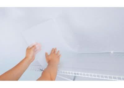 The Everbilt 12 in. Shelf Liner instantly gives any 12 in deep Regular Duty or Fixed Rod ventilated shelf a flat solid surface. Perfect for shoe shelves, pantries, or any space where small items may tip or fall through ventilated shelving. Each liner includes locking tabs that provide a secure fit to the shelf and keep it from sliding or shifting. No hardware is required for installation, simply use scissors to cut the liner to your desired length. • Color: White • Size: 10 ft x 12 in