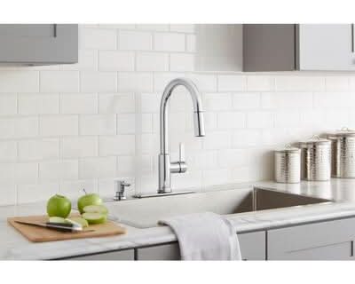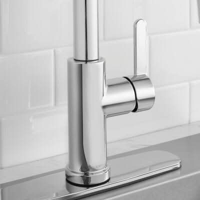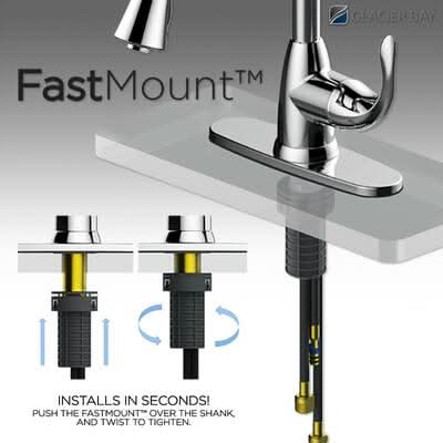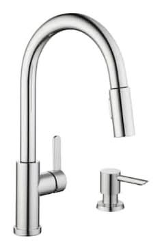 The Paulina Single-Handle Pull-Down Sprayer Kitchen Faucet with Soap Dispenser in Chrome is the perfect faucet for your Farmhouse Style kitchen or to complement any other decor style. Easy to use with a single handle design, this faucet has a convenient pull-down spray wand with 2-spray modes and a long reach that makes easy work of kitchen tasks. The pull-down sprayer features an aerated spray and a new TurboSpray that is exclusive to Glacier Bay. Featuring a ceramic disc cartridge for drip free performance, the 1.8 GPM flow rate also provides excellent water pressure for your cleaning needs. This kitchen faucet also includes the exclusive FastMount mounting system to make installation quicker and easier.