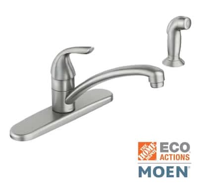 Moen Adler Single-Handle Low Arc Standard Kitchen Faucet With Side Sprayer In Spot Resist Stainless