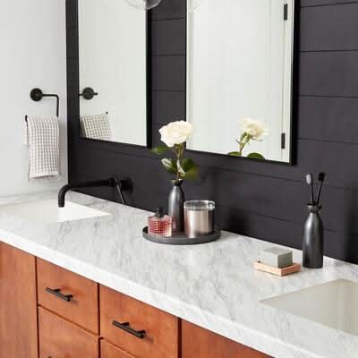 The Hampton Bay Ora Manhattan Marble laminate countertop endsplash can be placed on either end of your countertop to protect the wall where it meets the countertop deck. The durable laminate resists scrapes or scuffs, and requires no polishing or buffing. This kit can be easily installed and includes 1 end splash, 1 package of screws, and instructions. Cancer and Reproductive Harm - www.p65warnings.ca.gov