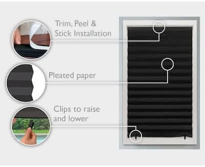 Redi Shade No Tools Original Blackout Pleated Paper Shade Black, 48 In. W X 72 In. L