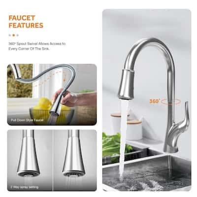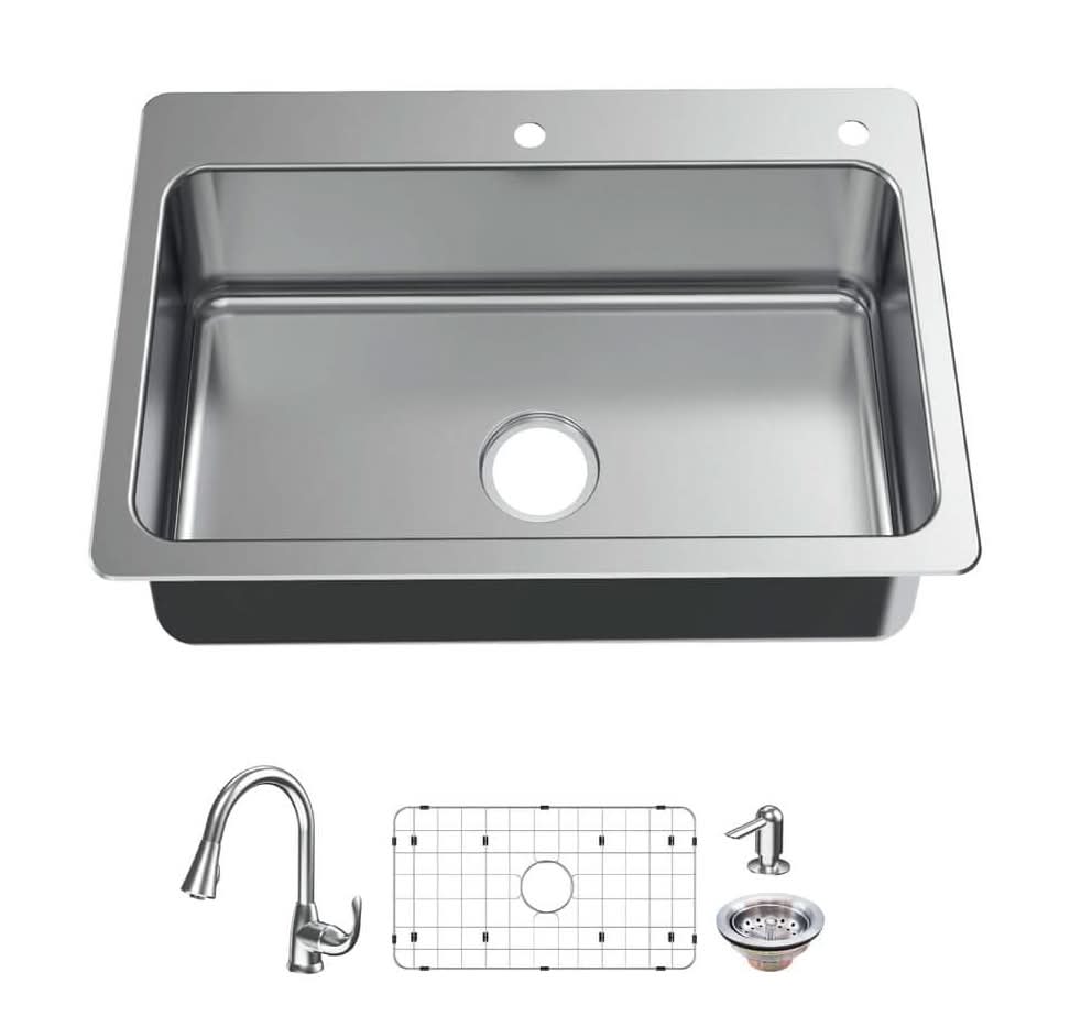 Glacier Bay Bratten 33 In. Drop-In Single Bowl 18 Gauge Stainless Steel Kitchen Sink With Pull-Down Faucet