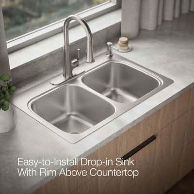 Kohler Verse 33 In. Drop-In Double Bowl 18-Gauge Stainless Steel Kitchen Sink With 4-Holes