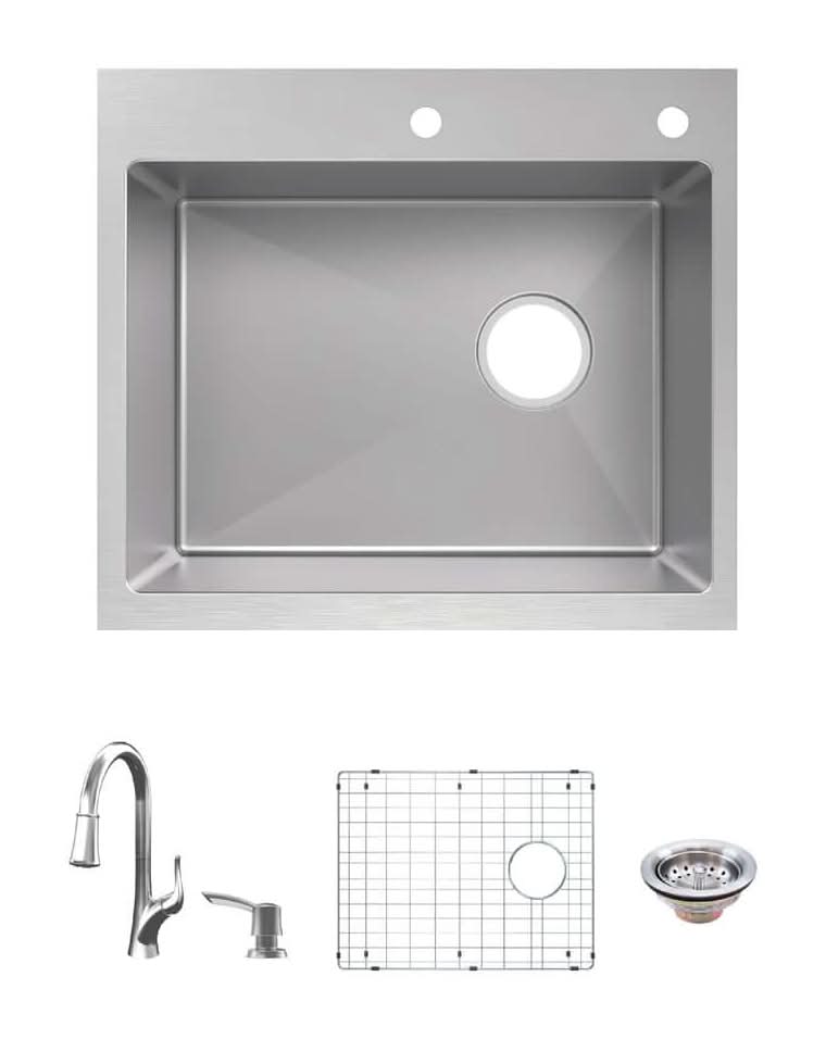 Glacier Bay Dolancourt Tight Radius 25 In. Drop-In Single Bowl 18 Gauge Stainless Steel Kitchen Sink With Pull-Down Faucet