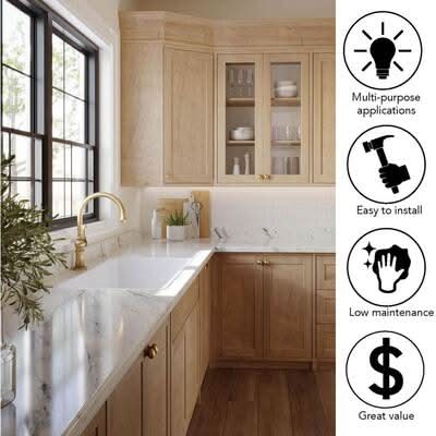 This Hampton Bay Calcutta Marble Universal End Cap Kit with Ora edge creates a finished, professional look for the exposed ends of your countertop. This end cap is specifically designed to match your countertop's Calcutta Drilling, sawing, sanding or machining wood products can expose you to wood dust, a substance known to the State of California to cause cancer. Avoid inhaling wood dust or use a dust mask or other safeguards for personal protection. For more information go to www.P65Warnings.ca.gov/wood.