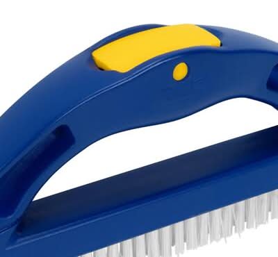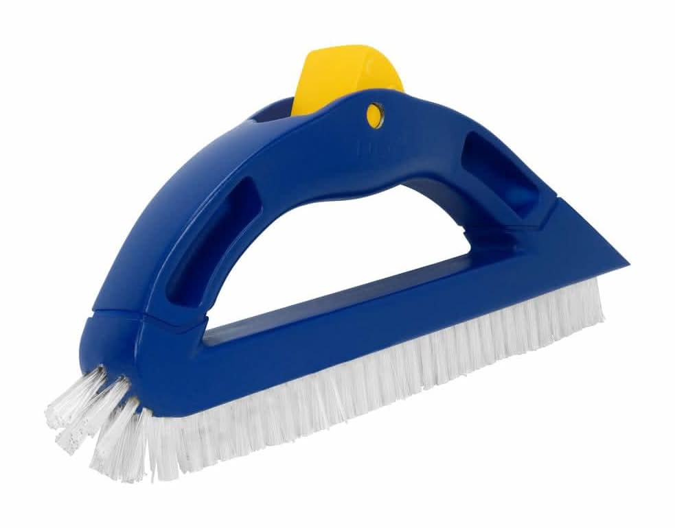 QEP's Large Handle Scrub Brush is the professional installers' preferred tool to remove unwanted buildup from tiles and grout lines. It is designed with a built-in scraper to tackle tough dirt and grime, and it features large handle for a firm grip, stiff nylon V-cut bristles for cleaning deep into grout, and a swivel head pole attachment for use standing up that provides additional leverage. This brush works on all grout joint widths, and its corner brush head easily cleans around corners, performing great on grout and tile, and hard surfaces like concrete. Not recommended for use immediately after tile installation. Multipurpose, it can be used for cleaning jobs at home, patio, garage, car, camper, boat, motorcycle or trailer.