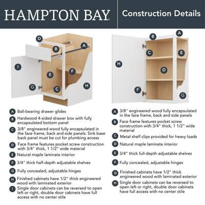 Hampton Bay features a stylish selection of on-trend door styles and finishes, all at an affordable price. From classic charm to modern minimalism, there's a design to suit every taste. Whether you're updating a kitchen, bathroom, wet bar, or entertainment center, Hampton Bay's versatile cabinet options help you create a custom look tha This product can expose you to chemicals including wood dust, which are known to the State of California to cause cancer. For more information go to www.P65Warnings.ca.gov.