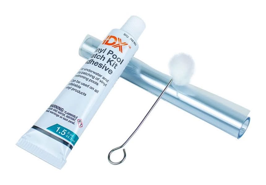 For underwater or dry patching of tears and holes in vinyl liner swimming pools and other vinyl products. With 72 sq. in. of vinyl patching material, simple cut to size and bond the patch to the original vinyl. Included in the kit is a 1.5 oz. Tube of fast-drying, high-strength adhesive and a dauber applicator. The easy-to-follow instructions and tips help you quickly repair your favorite pool toy or vinyl liner pool quickly and securely. Cancer and Reproductive Harm - www.P65Warnings.ca.gov