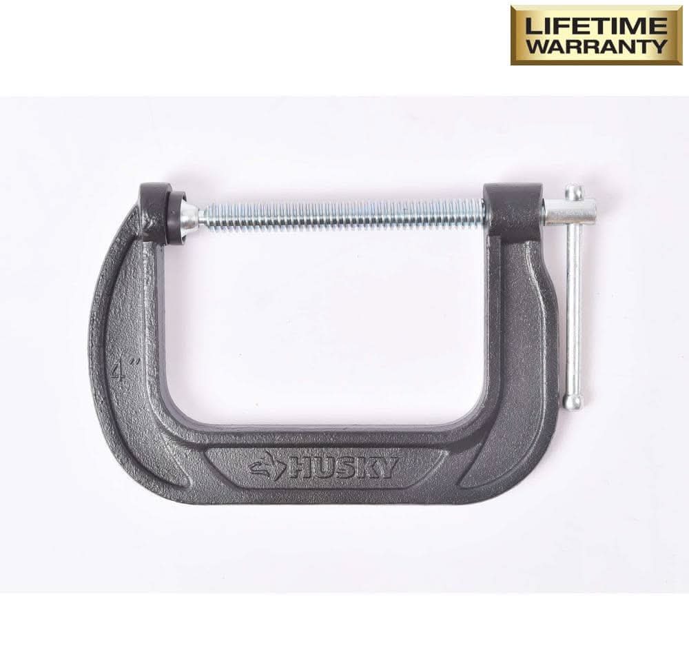 Husky C-Clamps ensure a tight and secure hold on whatever materials you're working on. A C-Clamp is a useful tool for any sort of woodworking project or any project in which you need something to stay in place. The screw of a C-Clamp screws open to a certain capacity, so be sure to get a variety of different sized Husky C-Clamps to This product contains a chemical known to the State of California to cause cancer, birth defects or other reproductive harm. For more information, go to www.P65Warnings.ca.gov. Size: 4 in