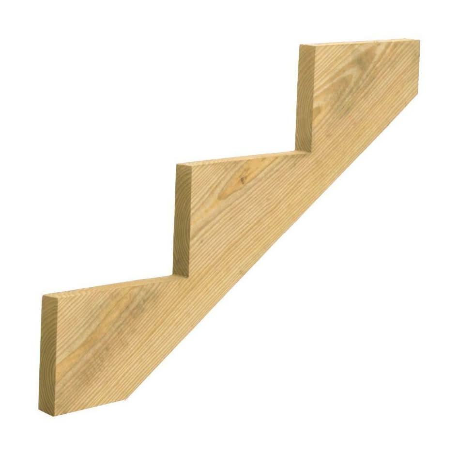 Hold up stair treads with this 3-step stair stringer that meets the highest grading standards for strength and appearance. The lumber is pressure-treated, protecting it from termites and rot. Ideal for a variety of applications, including decks, docks and other outdoor projects where lumber is exposed to the elements. When used properly, it is both safe and environmentally friendly. Color: Pressure treated