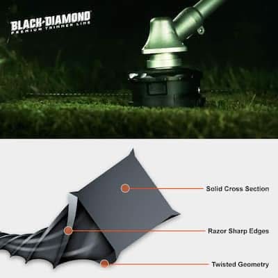 ECHO Black Diamond .105 in. trimmer line offers ultra-fast cutting for professionals and homeowners. The twisted, diamond-shaped line offers razor sharp edges and delivers a clean, even cut with superior cutting performance every time. Intended for medium to industrial landscaping use in residential and commercial environments Black Diamond delivers the flexibility for both with a wide range of applications. Black Diamond is manufactured with a high grade Cancer or reproductive harm.www.P65Warnings.ca.gov Size: 105 in